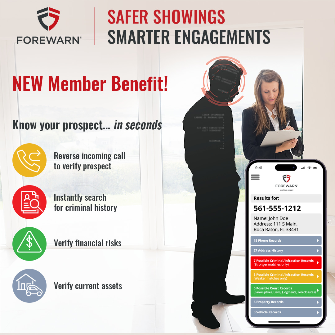 Learn about the new Massachusetts Association of REALTORS member benefit, Forewarn. A safety app that connects you real time with background information about prospects for safer showings.