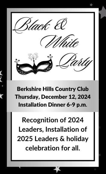 Please join us as we thank our 2024 leaders, install our 2025 leaders into service and celebrate all our members and affiliates who made this year a success. Black & White theme event is designed to be a fun and festive evening for all - with entertainment by DJ Chris Plankey, Buffet dinner and carving stations, Fun Photo booth keepsakes and more to keep the night in high celebration gear. We hope to see you there!